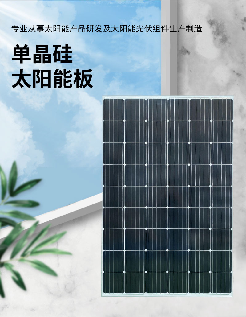 單晶硅太陽能電池板鋁合金邊框單晶電池片210W家用照明工廠直供