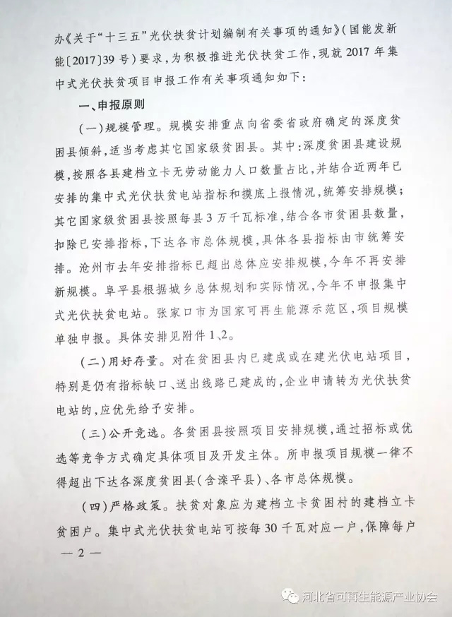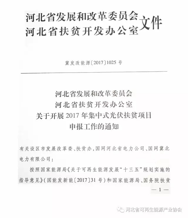 河北開展2017年集中式光伏扶貧項目申報工作 總規(guī)模1GW