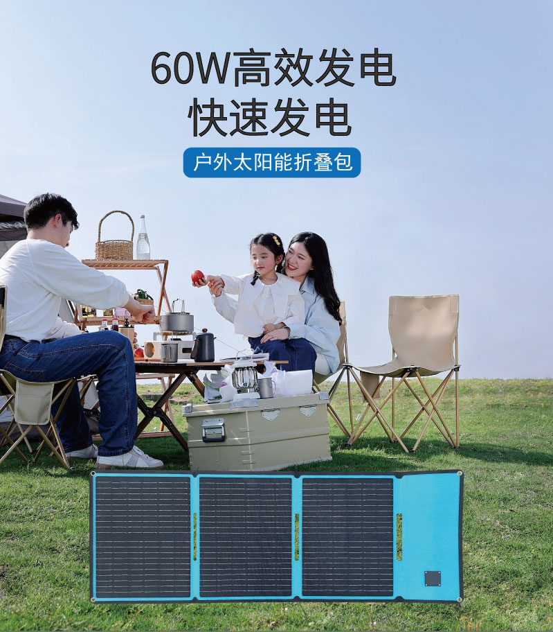 太陽能充電板60W單晶硅發(fā)電戶外便攜充電寶手機(jī)充器太陽能折疊包