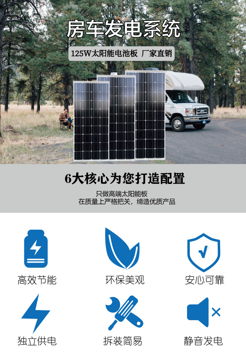 125W太陽能板18V房車光伏電池充電單晶硅戶外電源發(fā)電系統(tǒng)